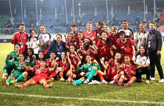 काठमाडौं- कप्तान सावित्रा भण्डारी ‘साम्बा’ को ५ गोल गरेपछि नेपालले एएफसी महिला एसियन कप छनोटमा आज निरिह लाओसलाई ९-० को फराकिलो अन्तरले हराएको छ ।