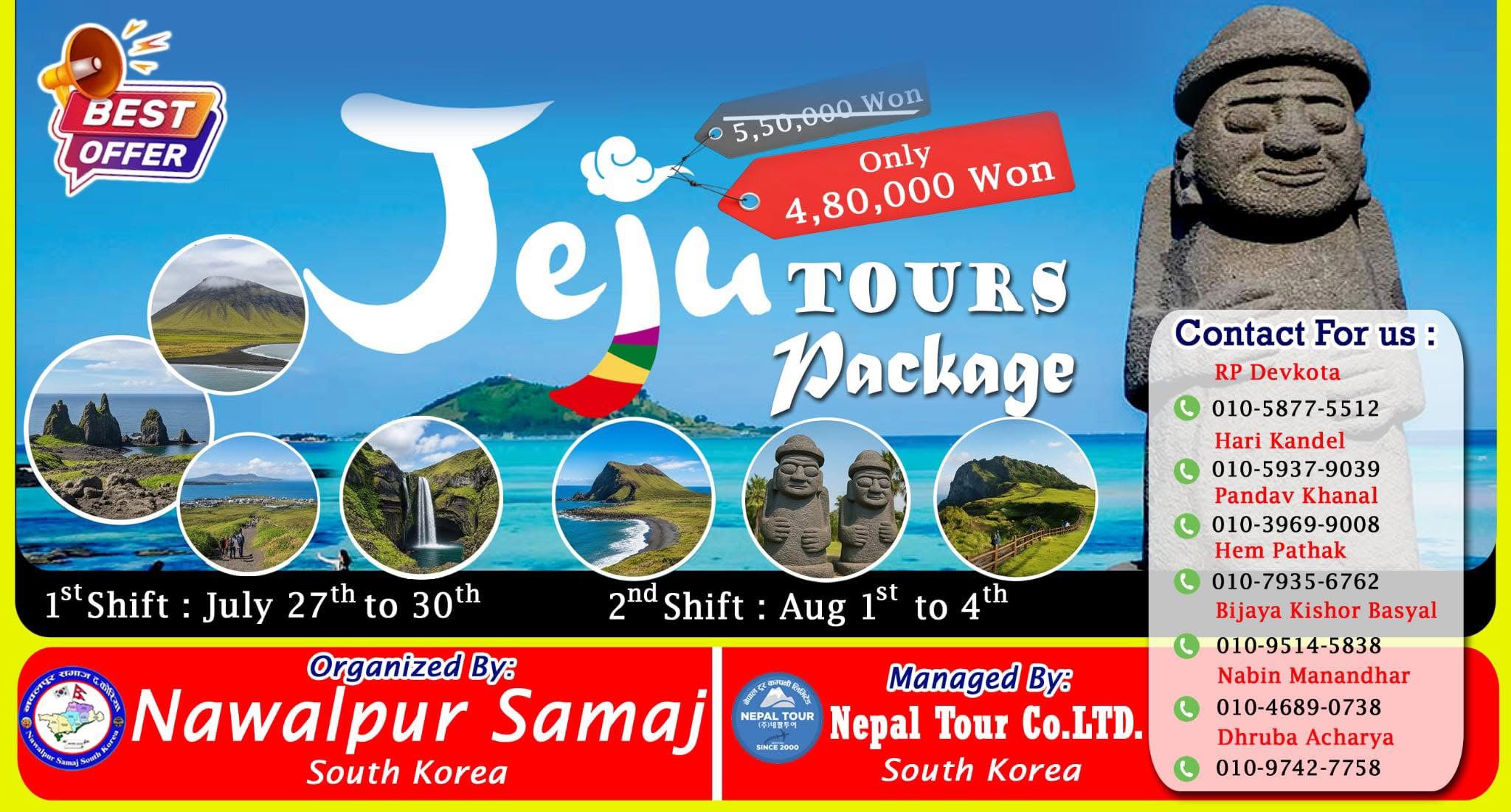 दक्षिण कोरियामा सक्रिय नवलपुर समाजले यो वर्षको गर्मी बिदालाई रमाइलो र अविस्मरणीय बनाउन दुई चरणमा छेजुदो भ्रमणको आयोजना गर्ने भएको छ। जुलाई २७ देखि ३० सम्म पहिलो चरण र अगस्ट १ देखि ४ सम्म दोस्रो चरणमा हुने यो यात्रा नवलपुर जिल्लाबासी मात्र नभई सम्पूर्ण कोरियामा कार्यरत नेपाली समुदायका लागि खुला राखिएको छ।