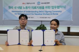 दक्षिण कोरिया – दक्षिण कोरियामा रहेका नेपाली श्रमिक, विद्यार्थी तथा कागजात नवीकरण नभएकाहरूका लागि ठूलो राहतको खबर आएको छ। पार्वती मोक्तान नेतृत्वको गैर आवासीय नेपाली संघ (NRNA) दक्षिण कोरिया र कोरियाली चिकित्सक समाजबीच निःशुल्क स्वास्थ्य उपचार सेवा प्रदान गर्ने सम्झौता भएको हो।