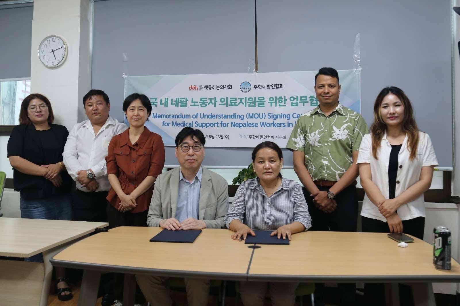बुधबार, एयस डकाष्टको कार्यालयमा सम्पन्न विशेष समारोहमा NRNA दक्षिण कोरियाकी अध्यक्ष पार्वती मोक्तान र कोरियाली चिकित्सक समाजका अध्यक्ष इम सक योङले सम्झौता पत्रमा हस्ताक्षर गरे।