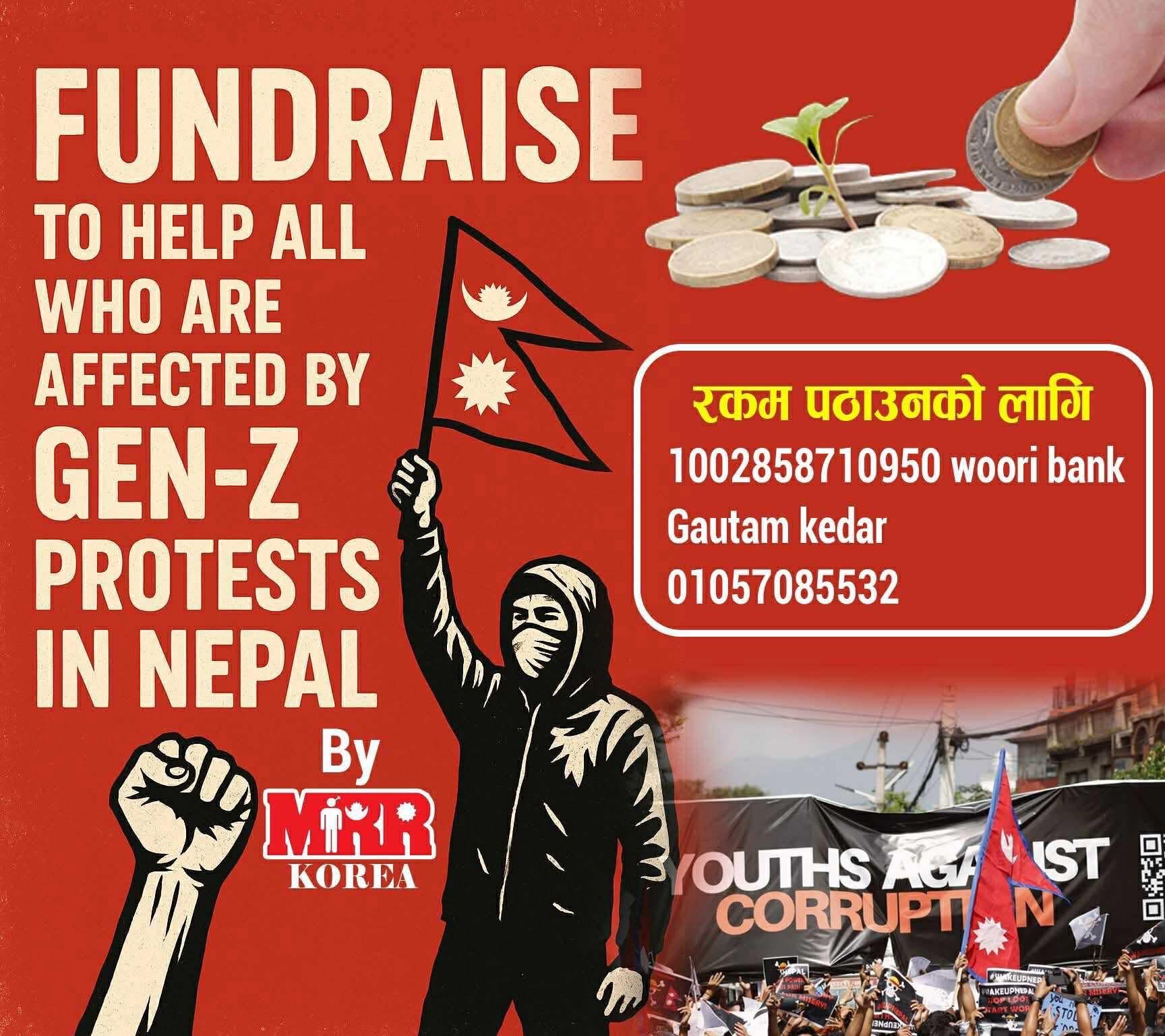 यसैबीच, विदेशमा रहेका नेपालीहरूले घाइतेहरूको उपचारमा सहयोग पुर्याउन अभियान सुरु गरेका छन्। दक्षिण कोरियामा रहेको MRR Korea समूहको नेतृत्वमा सुरु भएको अभियानका लागि वूरी बैंकको खाता सार्वजनिक गरिएको छ। अभियानमा समन्वयकर्ताहरूका सम्पर्क नम्बरहरू पनि उपलब्ध गराइएको छ।