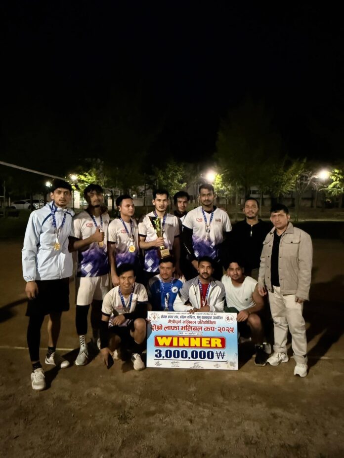 नेपाल मगर संघ दक्षिण कोरिया, थेगु शाखाको आयोजनामा दोस्रो लाफा भलिबल कप प्रतियोगिता २०२५ थेगुमा भव्य र उत्साहपूर्ण वातावरणमा सम्पन्न भएको छ। कार्यक्रममा खेलकुदको माध्यमबाट कोरियामा रहेका नेपाली समुदायबीच आपसी एकता, सद्भाव र भाइचाराको सन्देश फैलिएको छ।